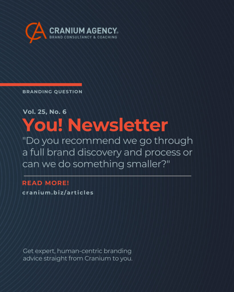 A Full Brand Discovery: If you’re launching a new venture, planning a major pivot, or sense that your brand hasn’t truly connected with people, an in-depth comprehensive brand discovery may be what you need.